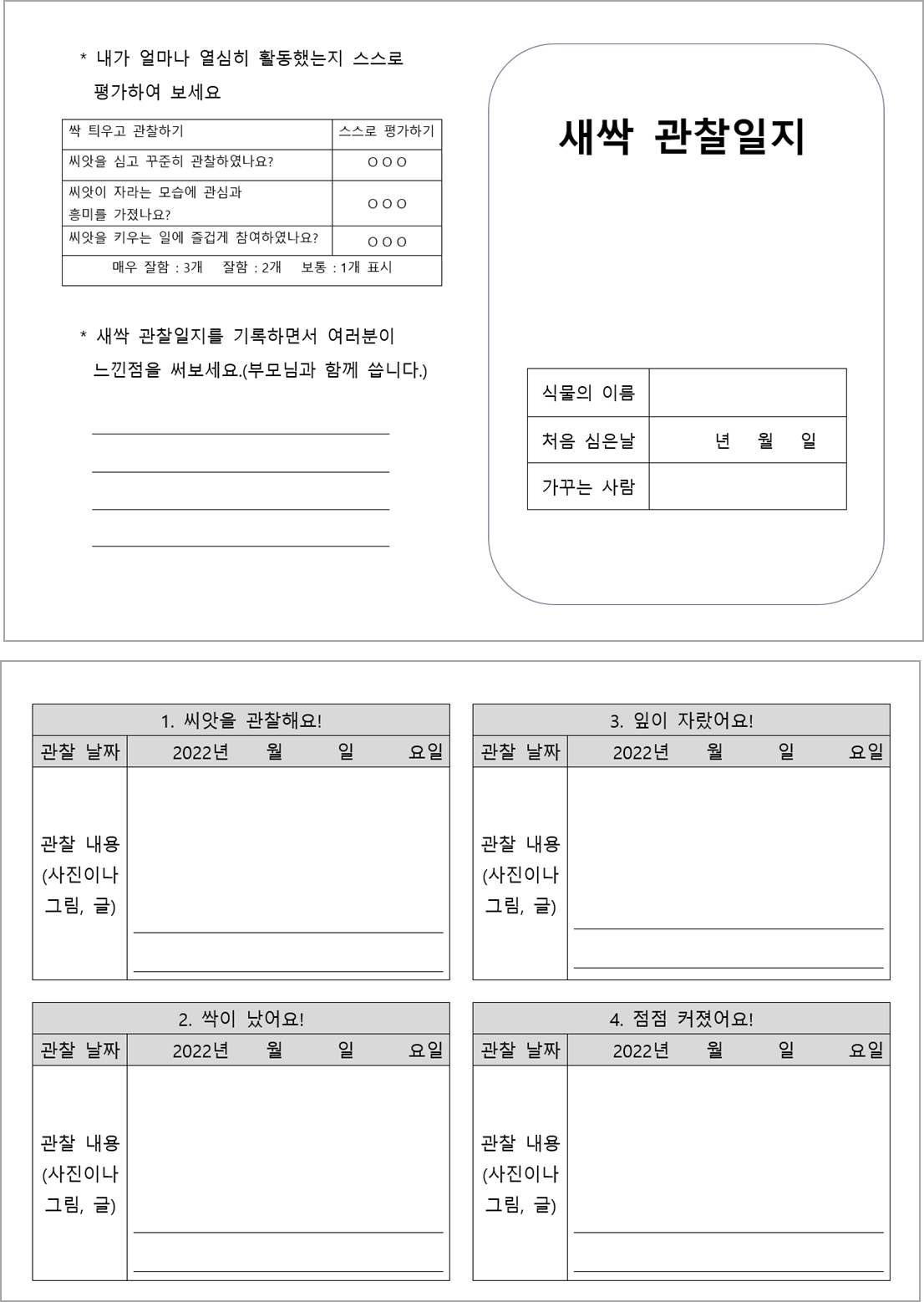 새싹관찰일지를 작성하는 숙제를 받았어요.