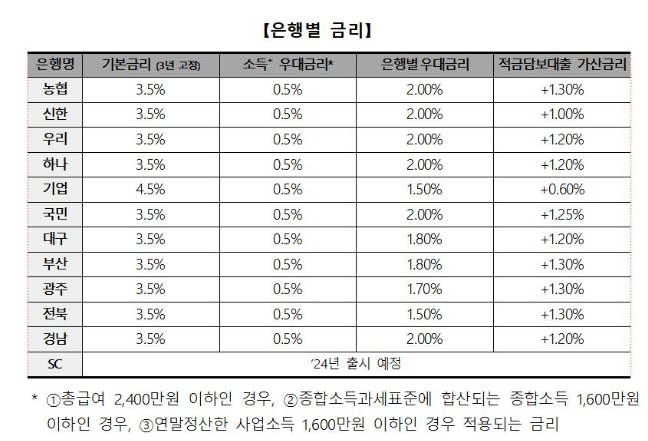 은행별 금리에 따른 이자와 추가적인 정부지원금을 지원받게 됩니다. 각 은행별 우대금리 항목별 조건을 비교하고 가장 적합한 곳으로 신청해 보세요.